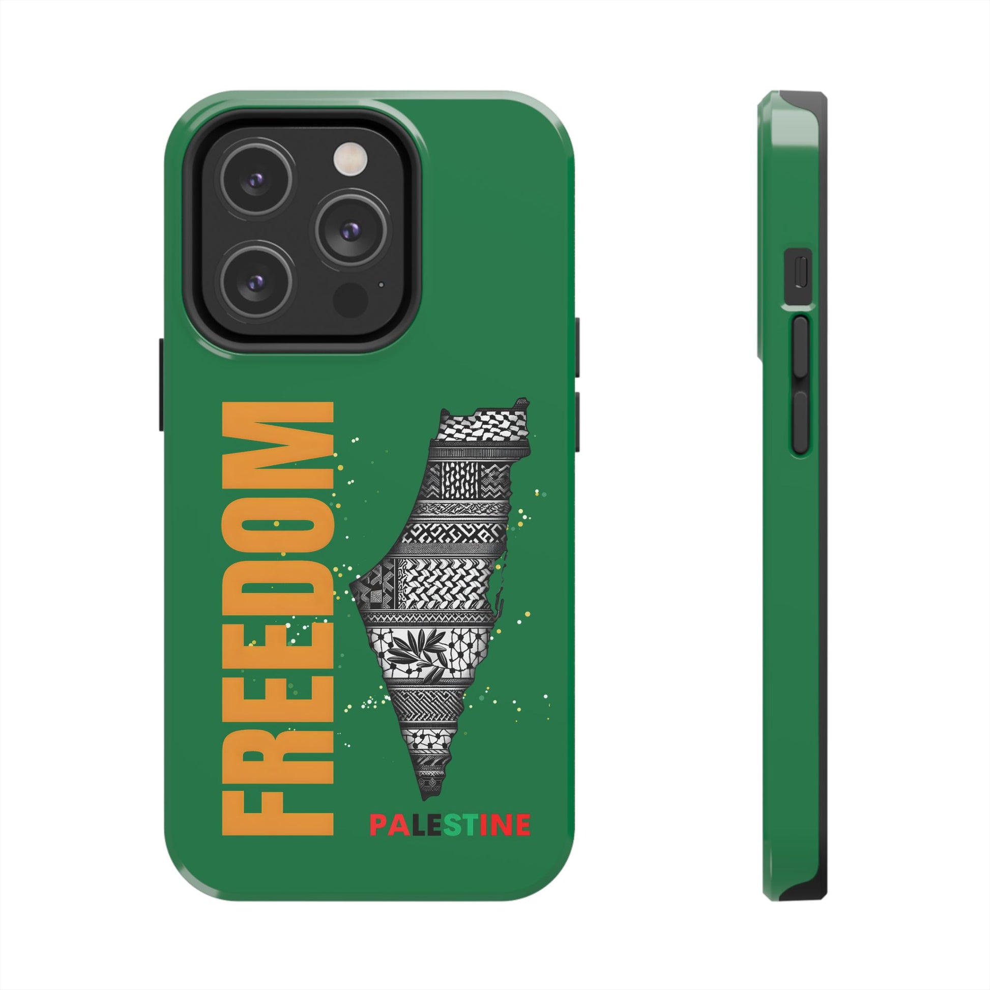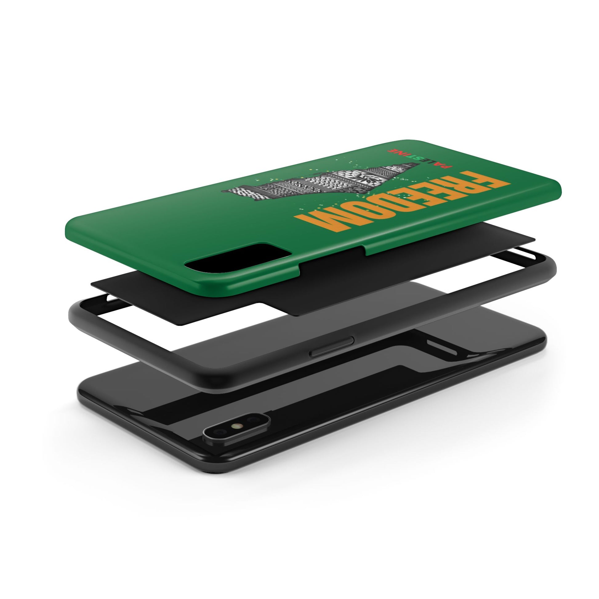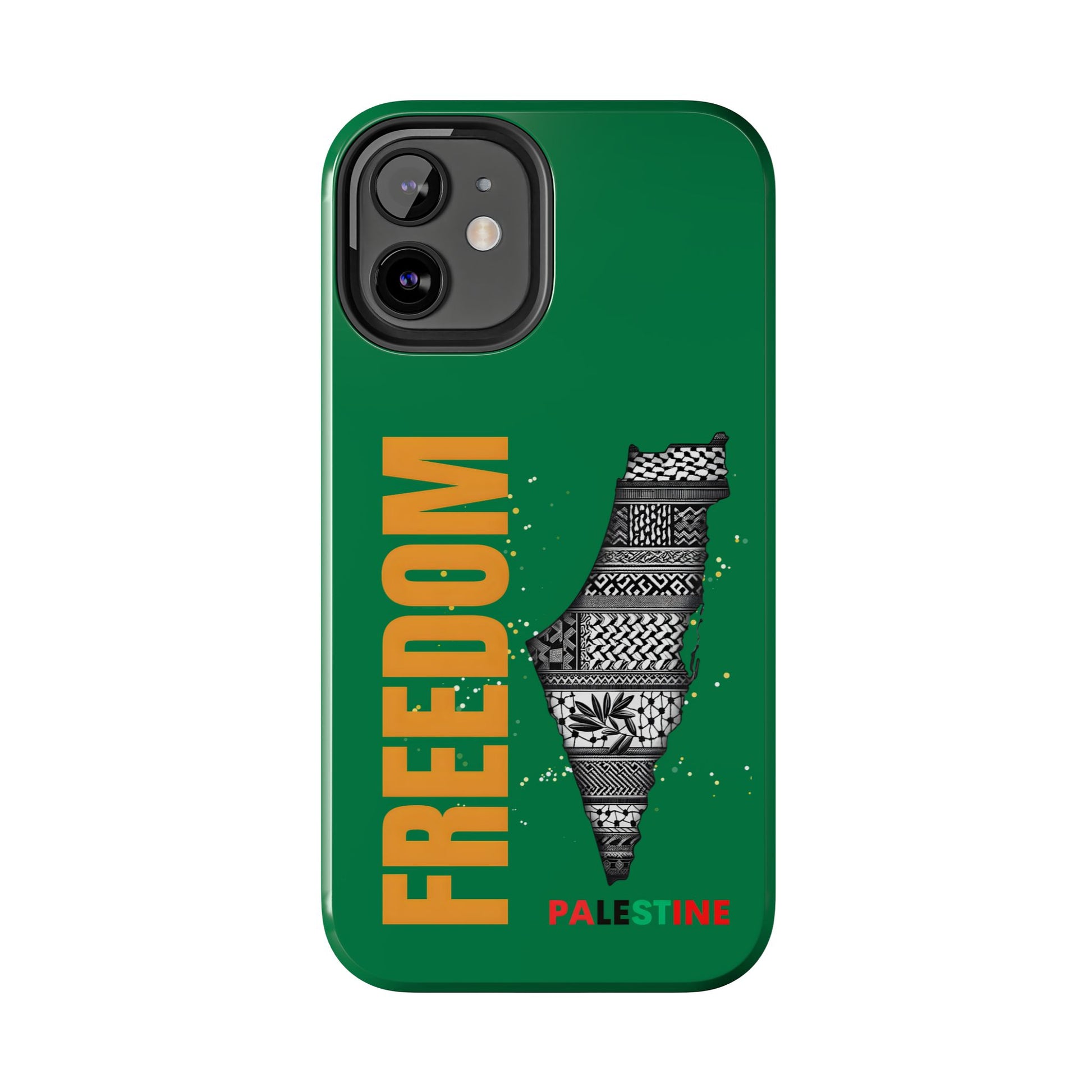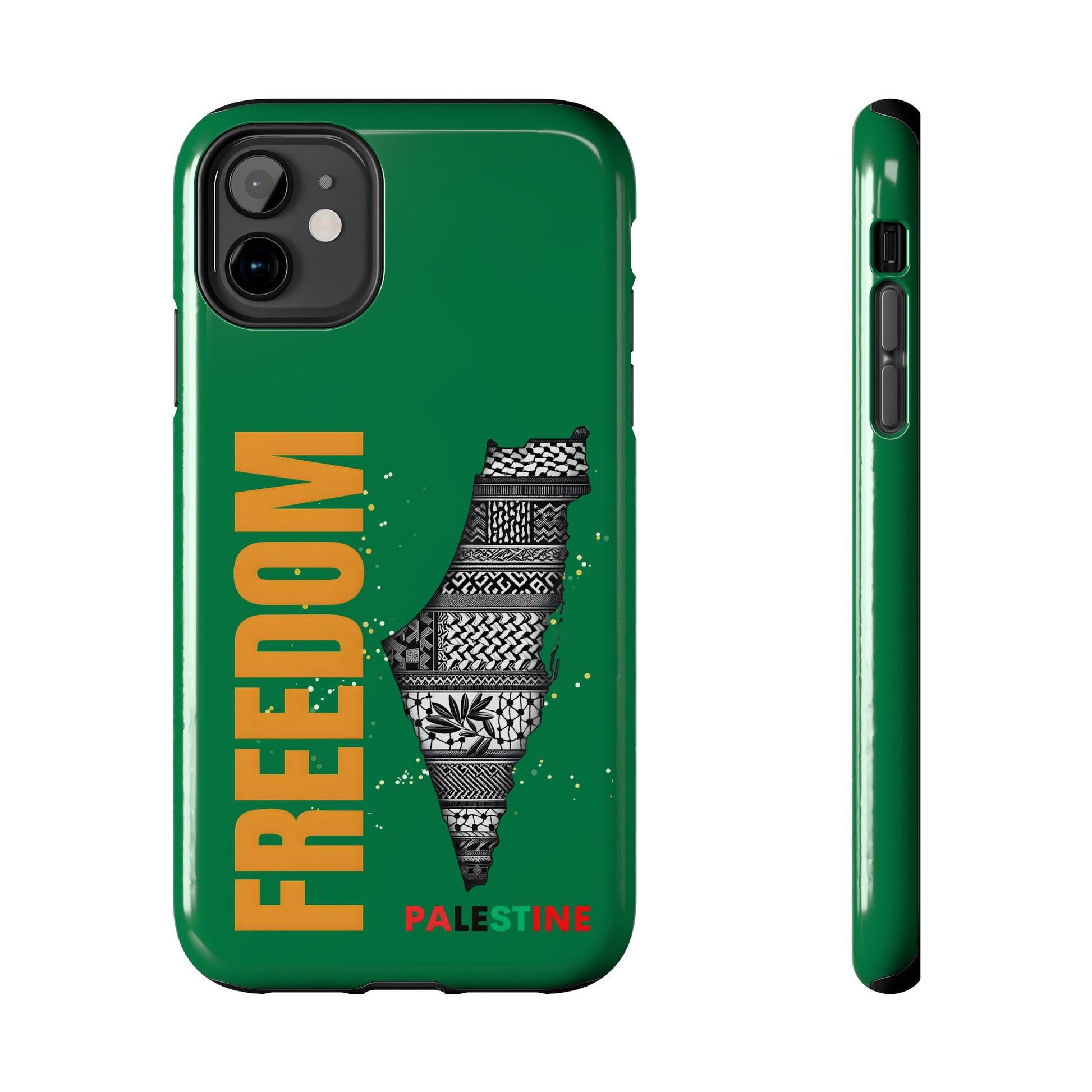 These Palestine Freedom Tough Phone Cases are designed to provide durable protection for your iPhone. With a unique design showcasing Palestine's freedom, these cases offer a strong and impact-resistant shield for your phone. The glossy finish adds a touch of style while the flexible rubber liner absorbs shock from impacts. Perfect for those who want to show their support for Palestine and need reliable phone protection. Ideal for holidays and occasions celebrating freedom and justice.